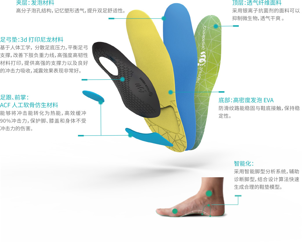 - 兰湾足行个性化定制鞋垫需先进行足部检测,利用人工智能算法与身体力学特征结合得出三维检测报告,通过3D打印数字制造技术量身打造个性化定制鞋垫。